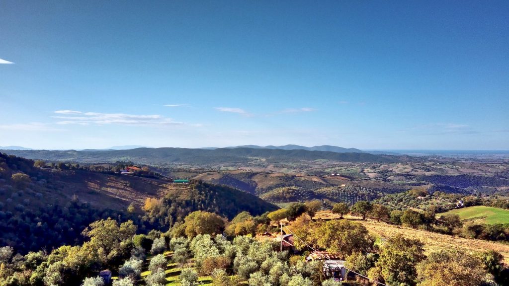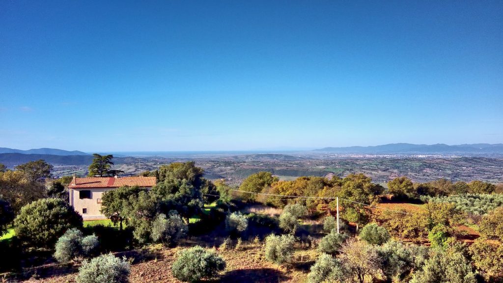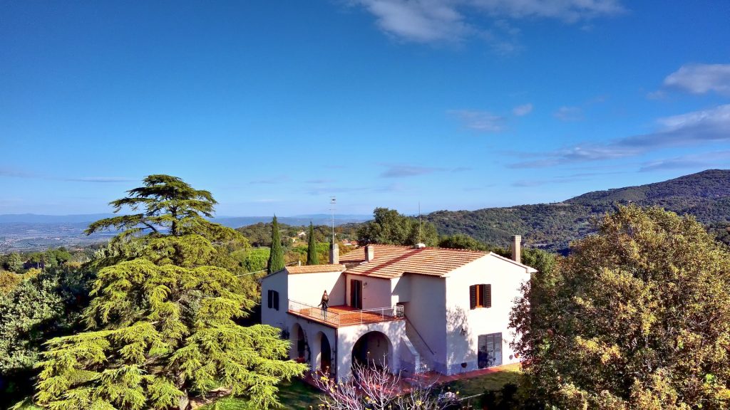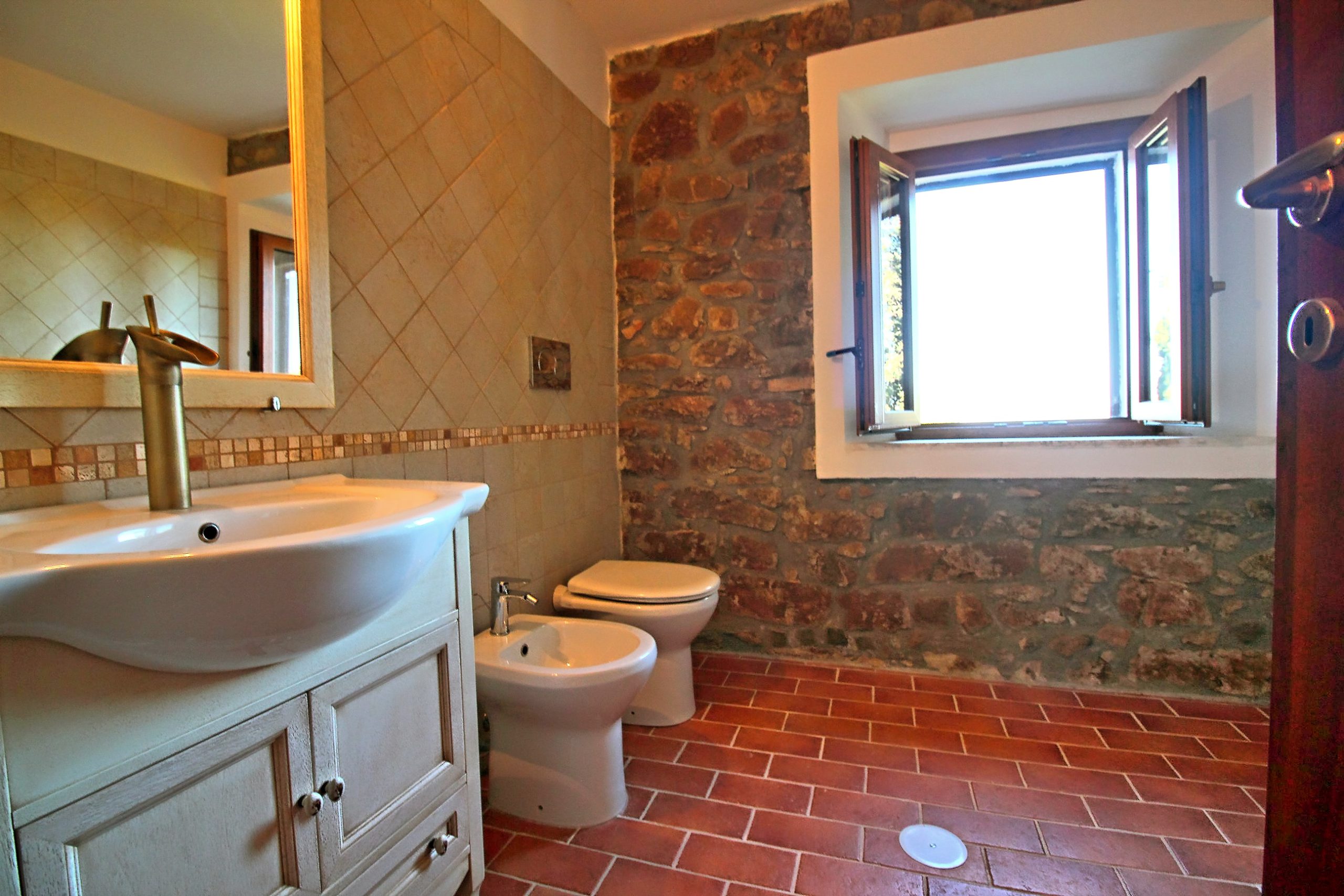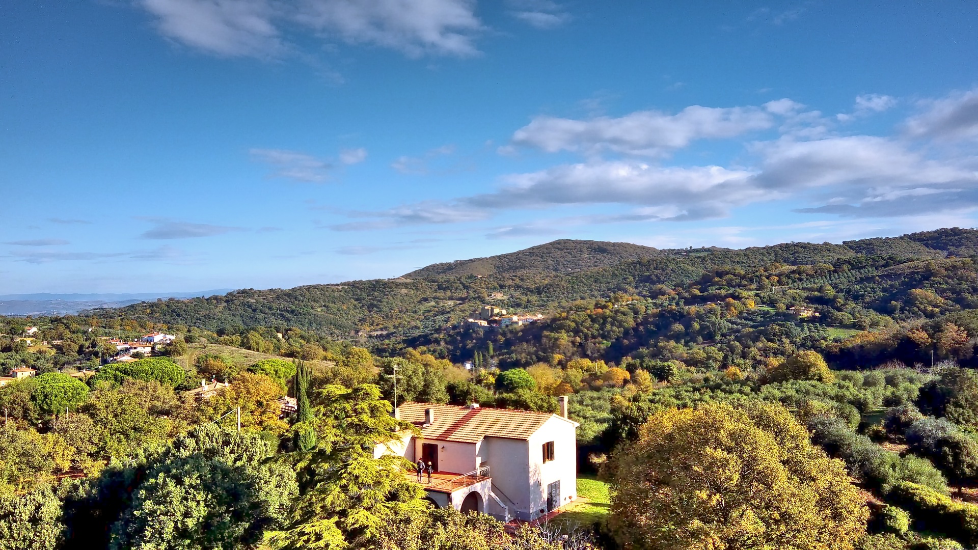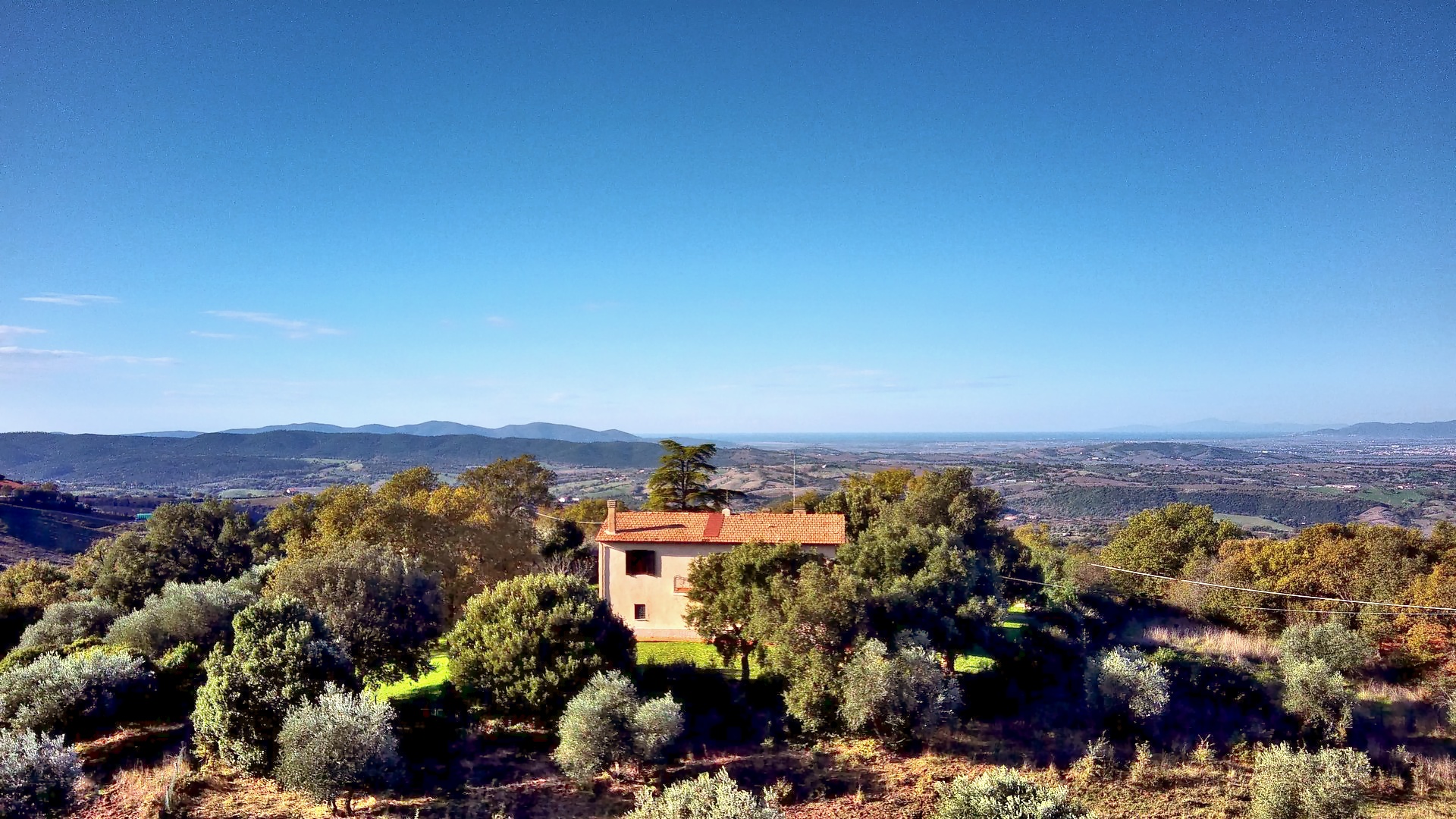 Immerso nelle colline maremmane, questo casale panoramico gode di una posizione dominante che offre una vista unica: dal mare dell’Argentario fino ai rilievi della Corsica nelle giornate più limpide e, dal lato opposto, sulla campagna incontaminata e sul borgo di Montorgiali.