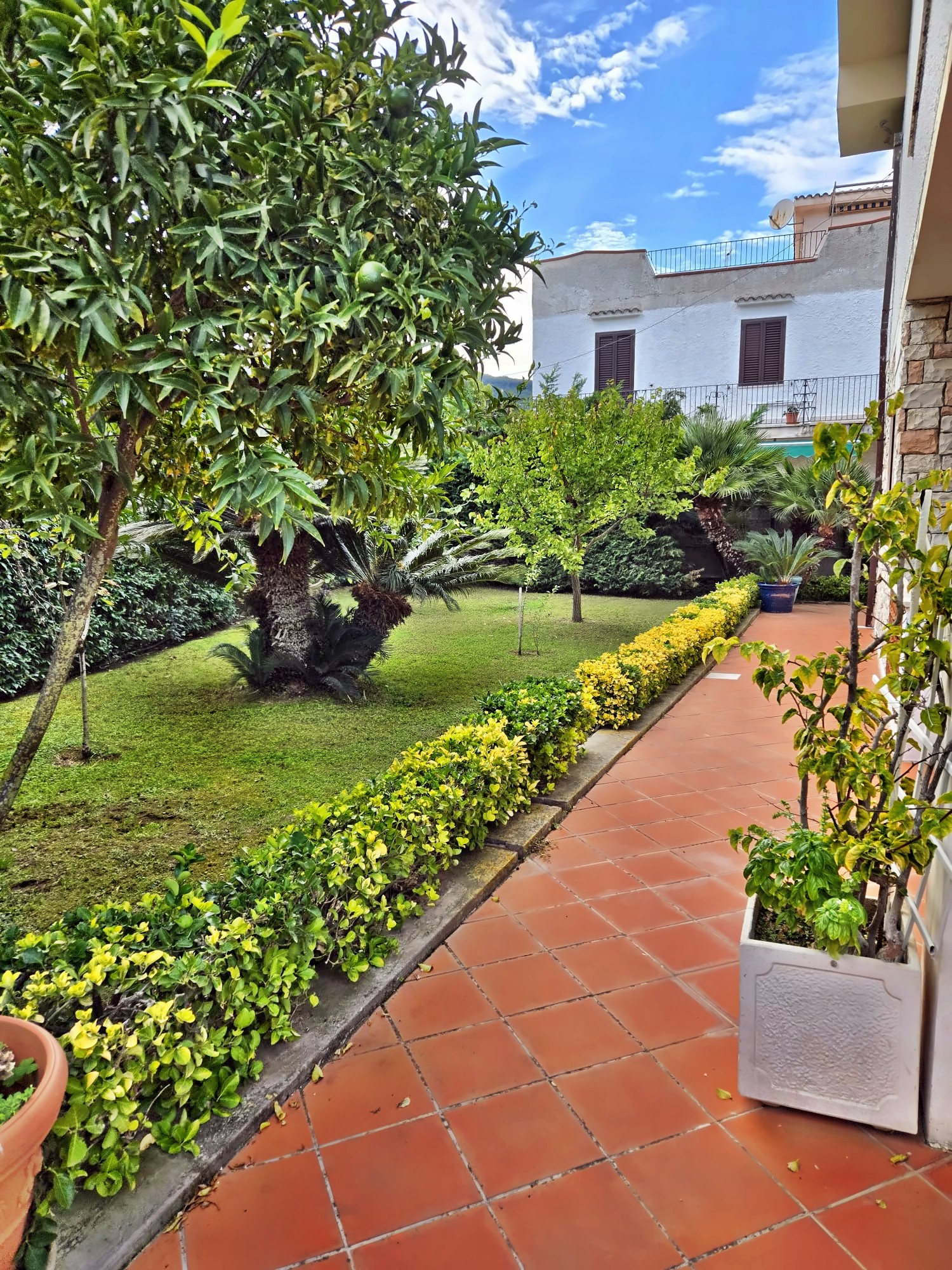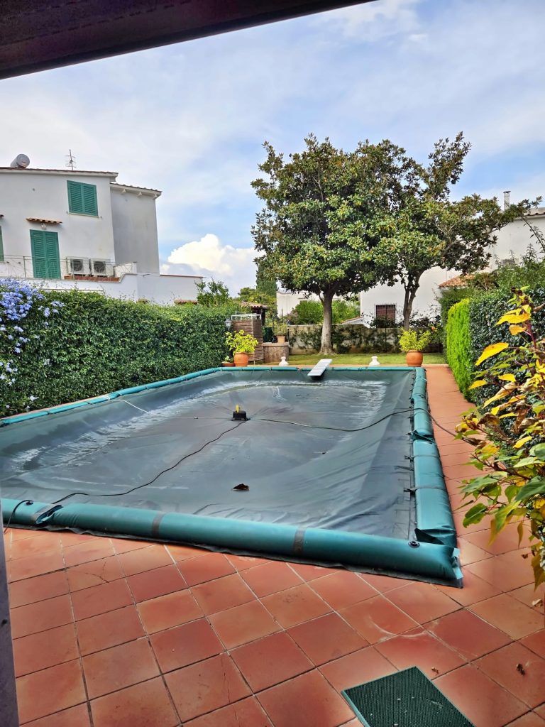 Outside, the approximately 1,000 square meter garden surrounds the large swimming pool with a diving area (from 1.20 m to 2.80 m deep): a private space where you can relax, entertain guests, and enjoy the Mediterranean climate in complete privacy.