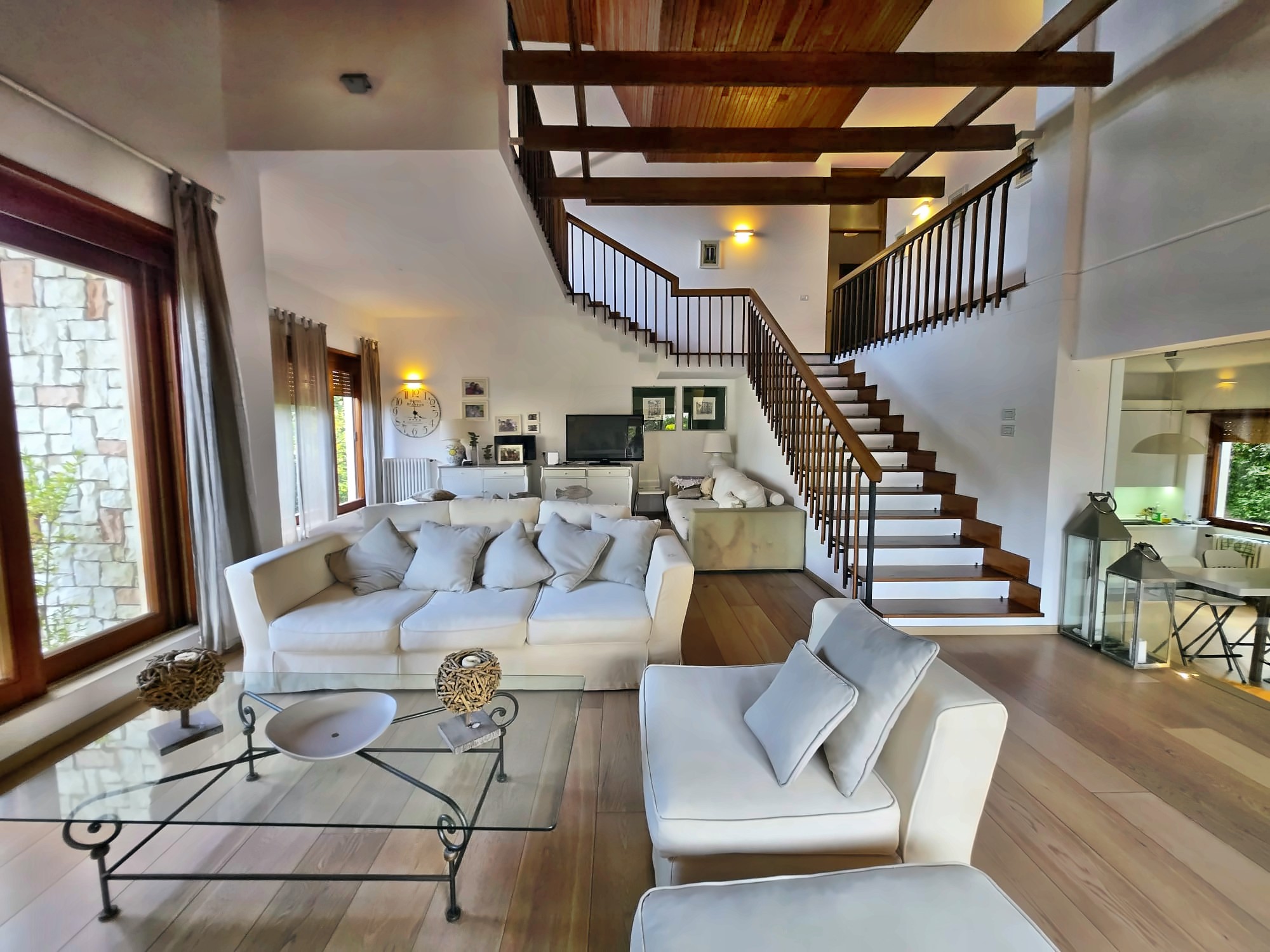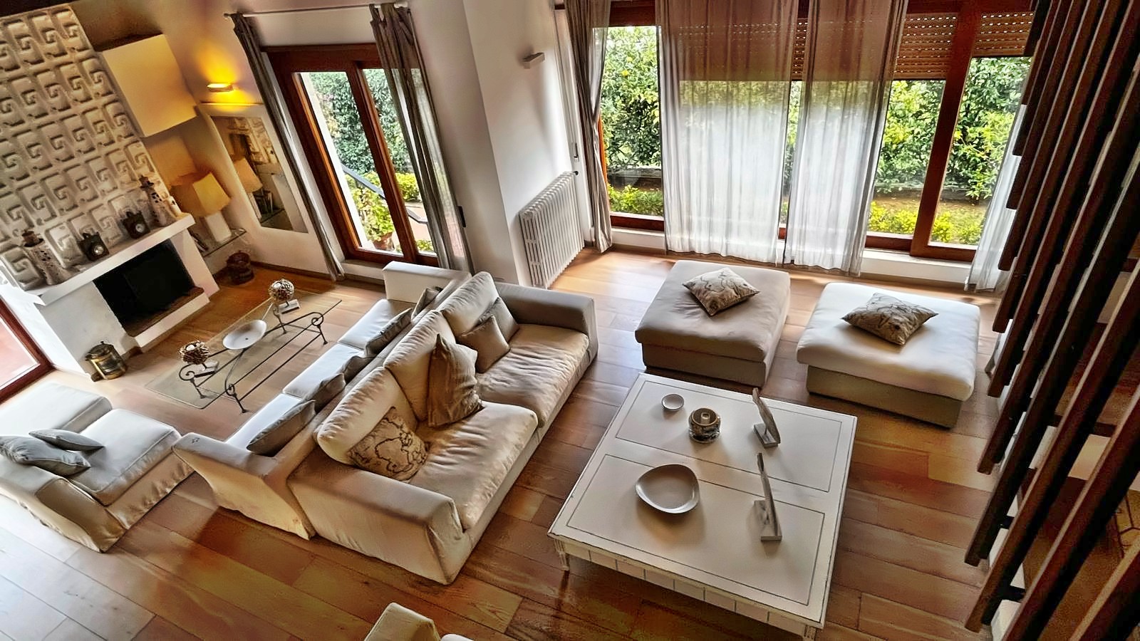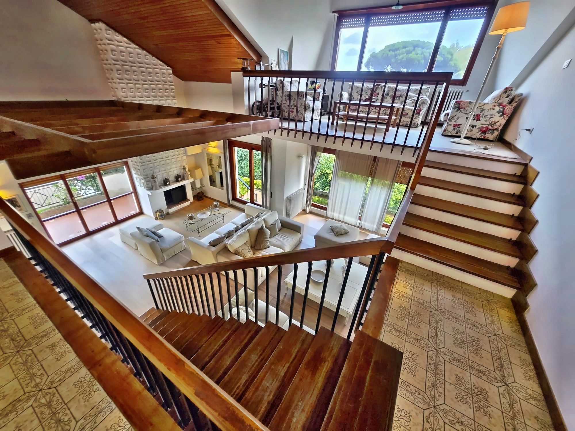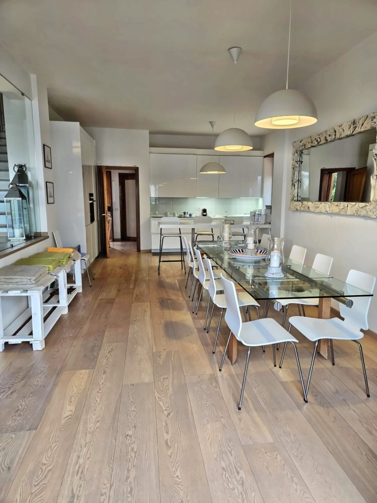 The sleeping area, located on the first and upper floors, offers spaces designed to guarantee privacy and comfort: a master suite with bathroom and private balcony, three futher double bedrooms - all with en-suite bathrooms and balconies - and a charming additional bedroom with bathroom. Each space is designed to allow multiple families to live in th ehouse with great autonomy.